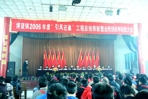 2007年2月26日上午9時(shí),博望鎮(zhèn)2006年度“引鳳還巢”工程總結(jié)表彰和全民創(chuàng)業(yè)再動(dòng)員大會(huì)在博望文體中心隆重舉行,當(dāng)涂縣縣長(zhǎng)操隆山、縣委常委、博望鎮(zhèn)黨委書記張清、鎮(zhèn)長(zhǎng)劉國寶等出席了大會(huì)并作了重要講話。會(huì)議對(duì)2006年度“引鳳還巢”和全民創(chuàng)業(yè)兩大工程中涌現(xiàn)出的各類先進(jìn)集體、先進(jìn)個(gè)人予以了表彰并對(duì)2007年的工作進(jìn)行了全部的部署。