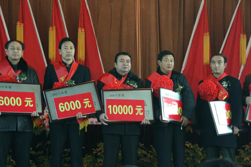 我公司獲得了“納稅大戶”(獎(jiǎng)金10000元)和“品牌與科技創(chuàng)新先進(jìn)企業(yè)”(獎(jiǎng)金2000元)兩項(xiàng)大獎(jiǎng),我司青島辦事處經(jīng)理?xiàng)钅緜€(gè)人榮獲了“十佳推銷員”稱號(hào)。