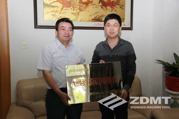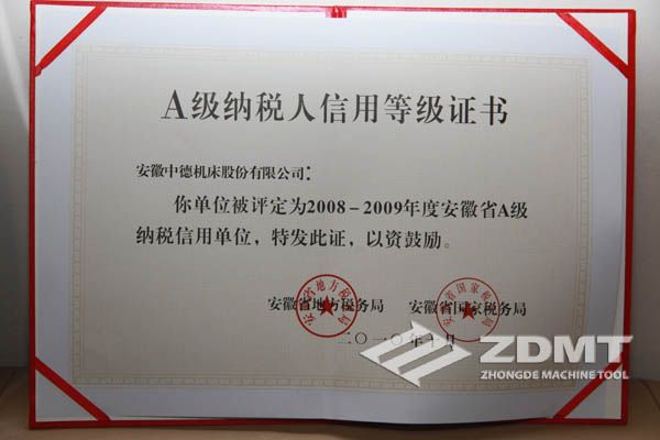 中德機(jī)床榮獲“2008-2009年度安徽省A級(jí)納稅信用單位”榮譽(yù)稱號(hào)