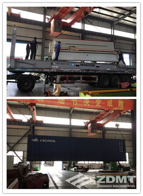 公稱壓力600噸、折彎能力長達(dá)7米的折彎機,以及剪切12mm、寬度6米的剪板機,其重量和體積遠(yuǎn)遠(yuǎn)超過了一般的海運貨柜規(guī)格。尤其是折彎機,重量超過了70噸,沒有過硬的技術(shù)和質(zhì)量,難以承接這樣大型設(shè)備的定做;加上機器出口,還要考慮如何拆裝運輸以及到港之后如何安裝調(diào)試等多方面的因素,更是對工廠大型設(shè)備出口經(jīng)驗?zāi)芰Φ目剂俊?/p>